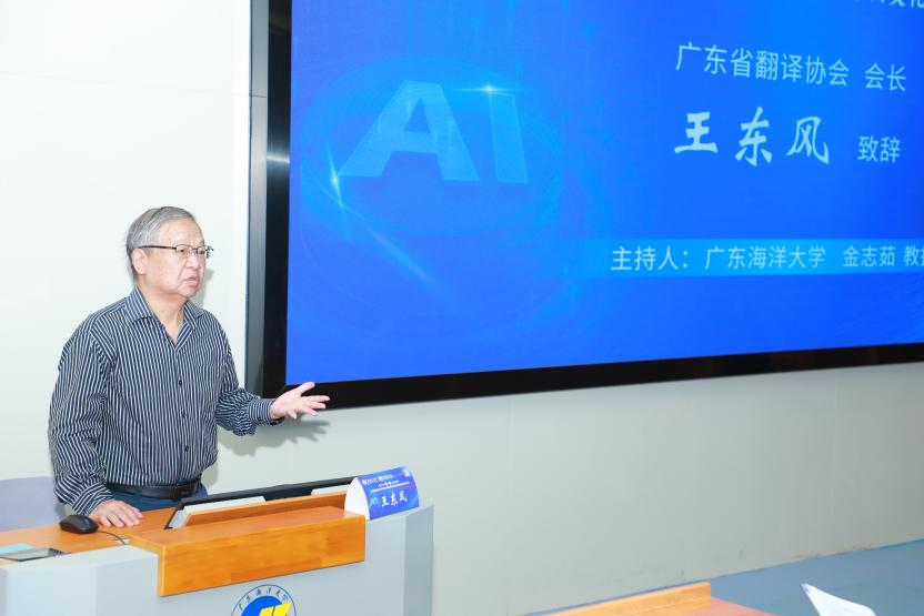 会议开幕式由广东海洋大学外国语学院院长金志茹主持,广东海洋大学党委常委、副校长周昌仕及广东省翻译协会会长王东风先后致开幕辞。周昌仕代表学校对与会嘉宾的到来表示热烈欢迎,强调在“一带一路”倡议深入推进的背景下,以AI技术赋能翻译研究、助力文化国际传播的时代价值与现实意义,期望各位同仁以会为媒凝聚共识、共促发展。
